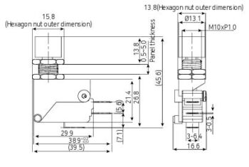 Panel mount micro switch, 15A, SPDT, 13mm button, black