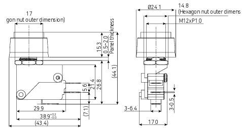 Panel mount micro switch, 15A, SPDT, 13mm button, black