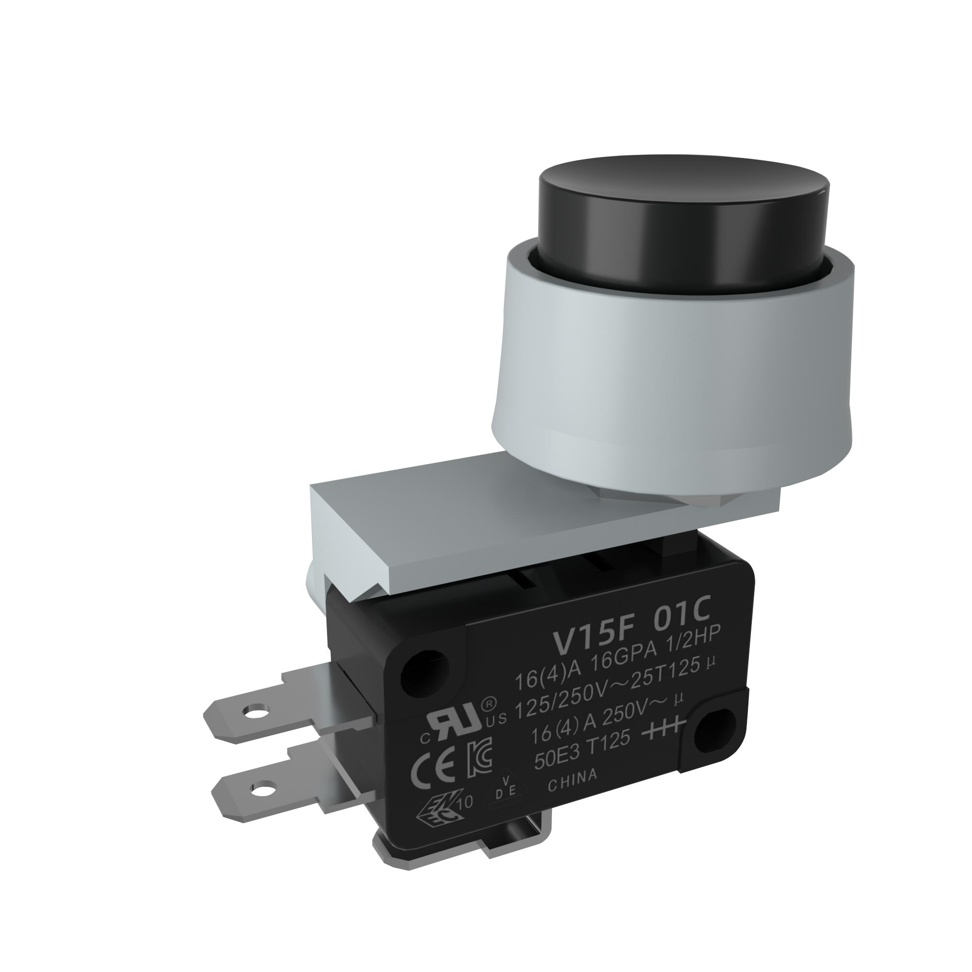Panel mount micro switch, 15A, SPDT, 13mm button, black